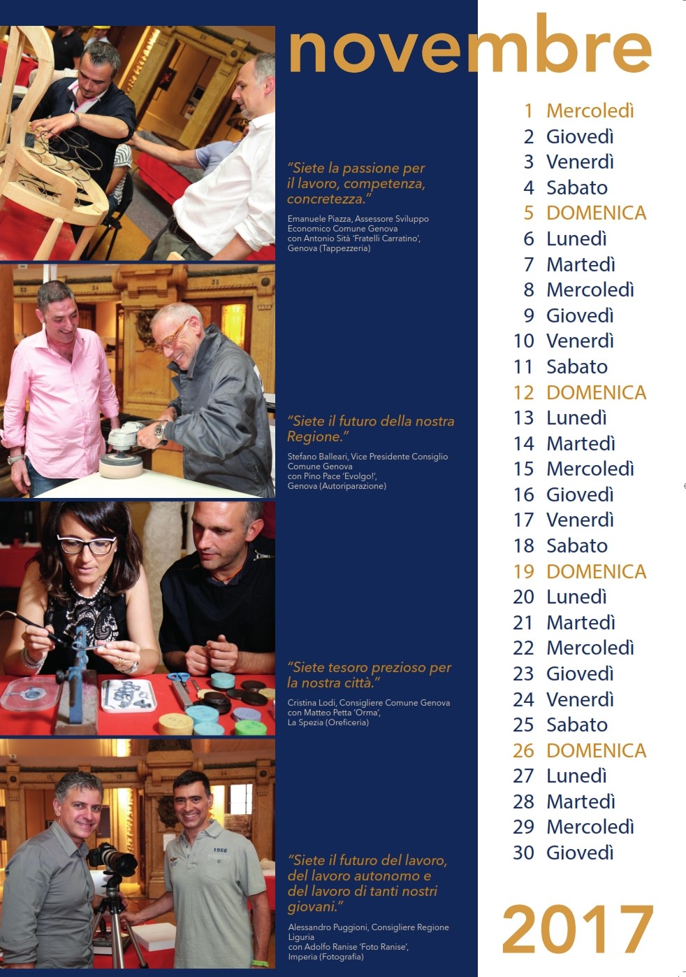 Ecco il mese di novembre del calendario del 2017 di Confartigianato Liguria che trova i seguenti amministratori ed imprese: