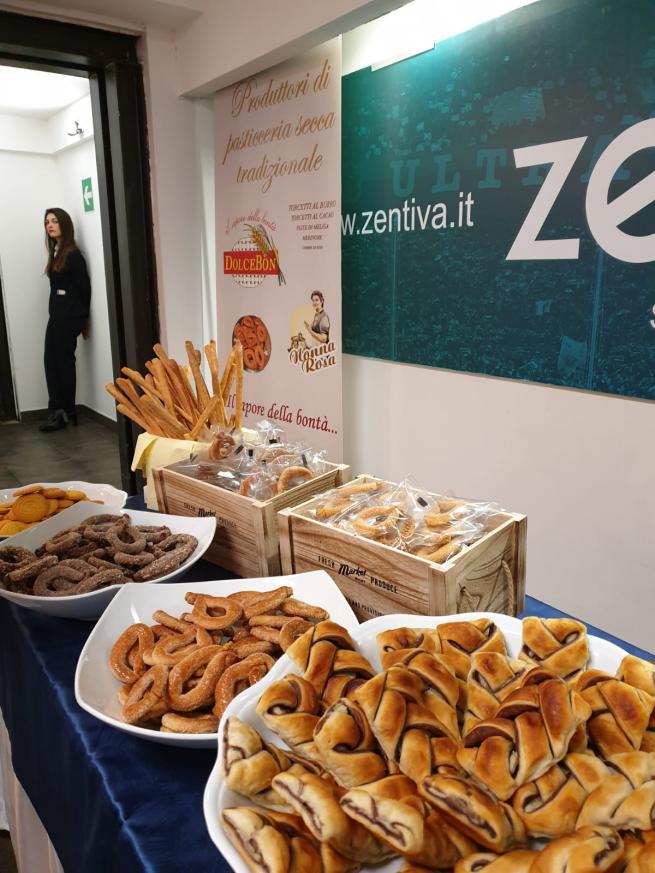 Hanno sicuramente soddisfatto il palato dei liguri e dei tifosi juventini presenti nelle sale hospitality, le tavolette al cioccolato di Torino Cioccolato dal 1980 e Sweet Land di Torino, il riso carnaroli della ditta Capittini di Galliate (NO) e della ditta Cascina Belvedere srl di Bianzé (VC),i grissini gourmet e stirati a mano, i torcetti e canestrei e i prodotti da forno delle ditte Brusa srl di Biella, Dolce Bon srl di Gaglianico (BI) e Piantanida dal 1962 di Coggiola (BI), la pasticceria e i gelati della ditta Effepi srl di Settime (AT), la pasticceria, gli amaretti, i cuneesi al rhum e la pasta fresca delle ditte AR-TE snc, Martini, Michelis e Pasta l’Antica Madia sas della provincia di Cuneo.